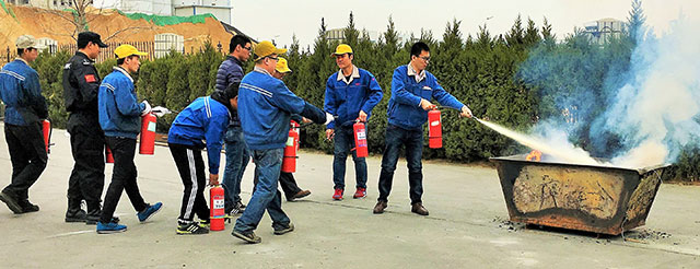 演練中,公司安委會副主任洪富強講解了消防器材結構和使用方法,就如何使用手提式干粉滅火器、控制火勢、撲滅燃著物進行了實戰指導,同時,要求新員工進行了滅火實戰操作演練。演練結束后,要求新員工對滅火器材進行了詳細的檢查維護,并對壓力不夠的或者達到使用期限的器材進行了更換。